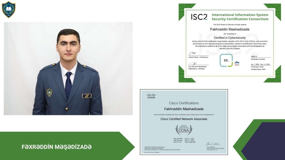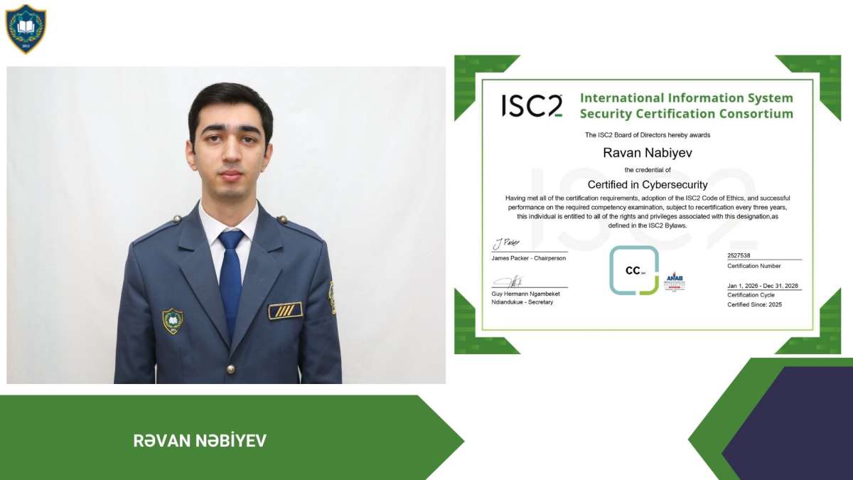Qeyd edək ki, beynəlxalq sertifikatlar tələbələrin kibertəhlükəsizlik və şəbəkə təhlükəsizliyi sahəsində praktik bilik və bacarıqlarını rəsmi şəkildə təsdiqləyir, beynəlxalq peşəkar mühitdə tanınmasına xidmət edir.