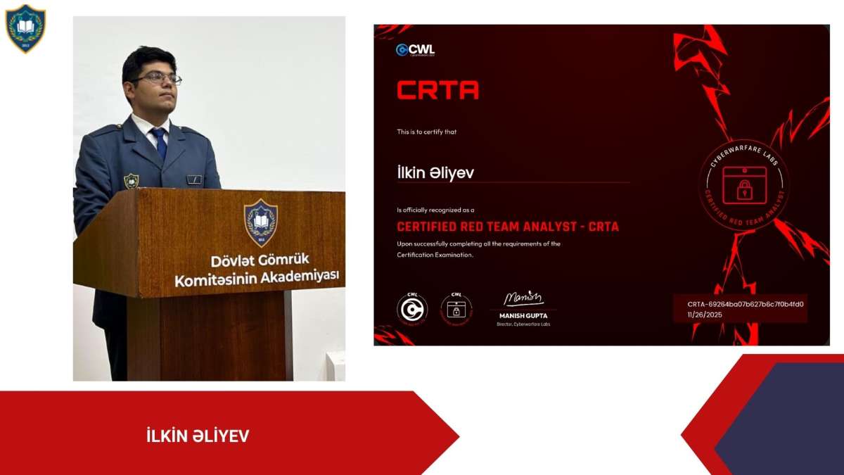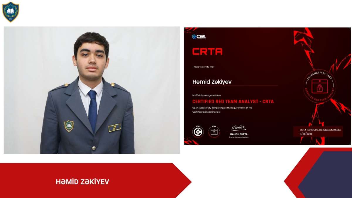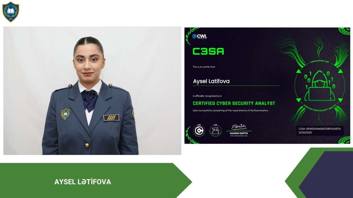 “İnformasiya təhlükəsizliyi” ixtisasının tələbələri Həmid Zəkiyev və İlkin Əliyev beynəlxalq səviyyədə tanınan CRTA (Certified Red Team Analyst) sertifikatını, Aysel Lətifova Cyber Security Analyst (C3SA) sertifikatını, Gülyaz İsmayılzadə eJPT (Junior Penetration Tester) və eWPTX (Web Application Penetration Tester eXtreme) sertifikatlarını, Fəxrəddin Məşədizadə CCNA (Cisco Certified Network Associate) sertifikatını qazanıblar.