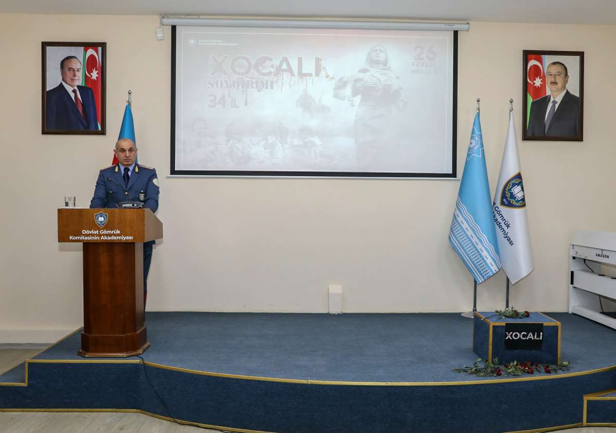 Dövlət Gömrük Komitəsinin Akademiyasının rəisi, gömrük xidməti general-mayoru Qulu Novruzov Xocalı soyqırımının Azərbaycan tarixinin ən faciəli səhifələrindən biri, yalnız xalqımıza deyil, bəşəriyyətə qarşı törədilmiş cinayət olduğunu vurğulayıb. Müzəffər Ali Baş Komandan İlham Əliyevin rəhbərliyi ilə qazanılan şanlı qələbədən sonra soyqırımı qurbanlarının qisasının alındığı, Xocalıda Azərbaycan bayrağının ucaldıldığı qeyd olunub.