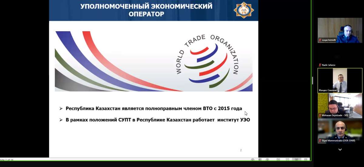 Martın 16-da Dövlət Gömrük Komitəsi və Qazaxıstan gömrük xidmətinin əməkdaşları arasında Səlahiyyətli İqtisadi Operator (SİO) mövzusunda onlayn formatda görüş keçirilib.