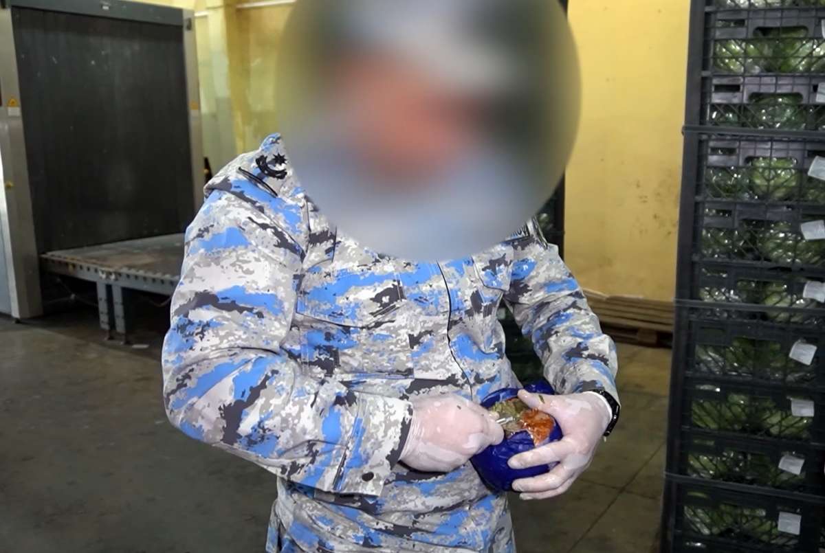 Rentgen qurğusu və kinoloji xidmət itinin tətbiqi ilə həyata keçirilən yoxlama zamanı iki ədəd paletdəki yeşiklərdə üzəriləri kahı yükü ilə örtülərək gömrük nəzarətindən gizlədilən 73 ədəd bağlamada, qablaşdırılmaları ilə birlikdə ümumi təqribi çəkisi 29 kiloqram 100 qram olan narkotik vasitə - marixuana aşkar edilib.