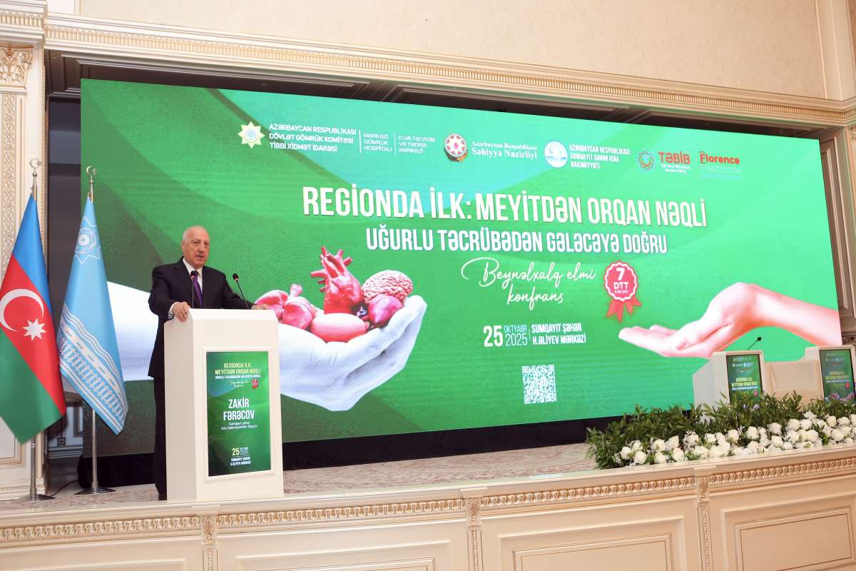 Dövlət Gömrük Komitəsinin Tibbi Xidmət İdarəsinin Elmi Təcrübi və Tədris Mərkəzinin, Mərkəzi Gömrük Hospitalının və rəsmi tərəfdaş “Florence Healthcare İnternational Qrup”un birgə təşkilatçılığı, Azərbaycan Respublikası Səhiyyə Nazirliyinin Orqan Donorluğu və Transplantasiyası üzrə Koordinasiya Mərkəzinin və TƏBİB-in dəstəyi ilə Sumqayıt şəhər Heydər Əliyev Mərkəzində “Regionda İlk: Meyitdən Orqan Nəqli - Uğurlu Təcrübədən Gələcəyə Doğru” mövzusunda Beynəlxalq Elmi Konfrans keçirilib.