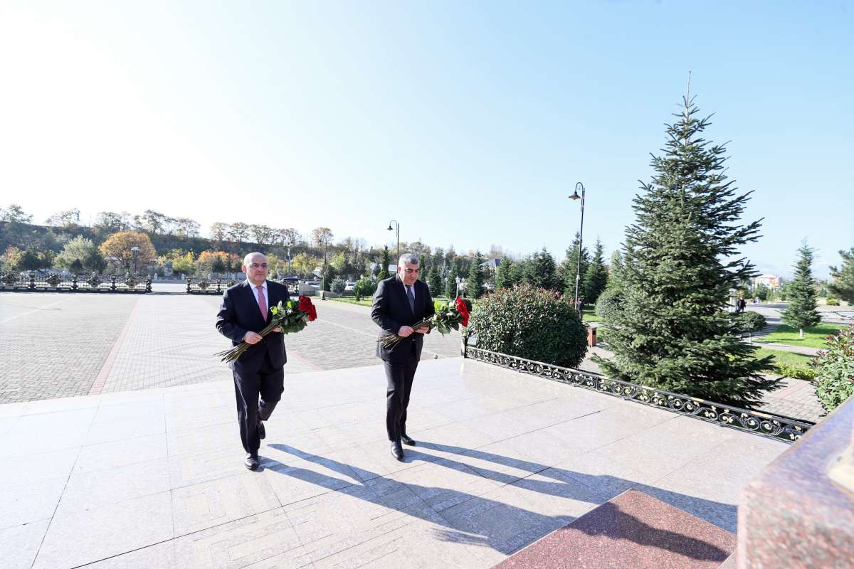DGK sədri qəbuldan öncə Quba şəhərinin mərkəzində Ümummilli Lider Heydər Əliyevin abidəsini ziyarət edərək önünə gül dəstəsi qoyub.