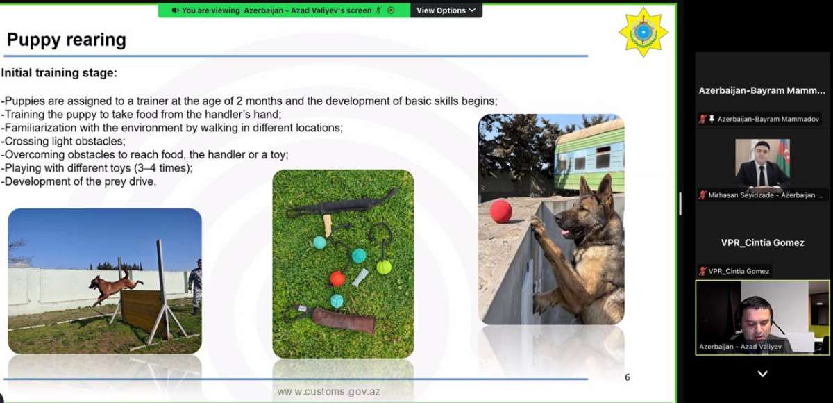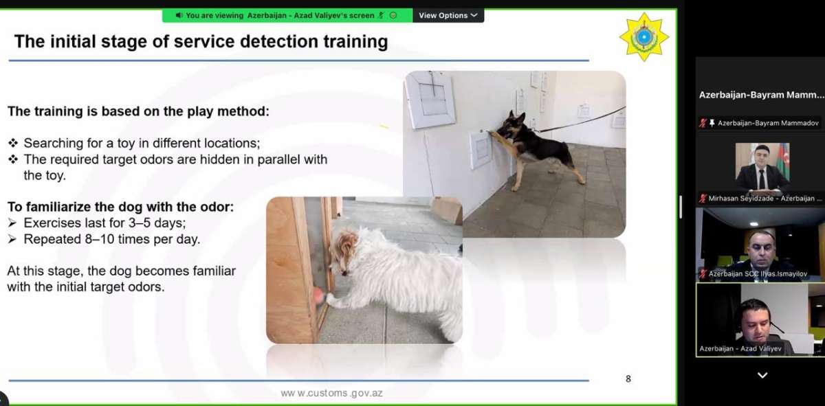 Tədbir çərçivəsində Dövlət Gömrük Komitəsinin Kinoloji Mərkəzi tərəfindən təqdimat keçirilib, mərkəzin fəaliyyəti, xidməti itlərin hazırlanması sahəsində tətbiq olunan müasir yanaşmalar, əməliyyat təcrübəsi, eləcə də əldə olunmuş nəticələr barədə ətraflı məlumat verilib.